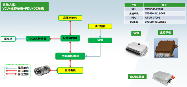 方案一:VCU+主控单机(MCU)+高压配电盒PDU+DC/DC转换器