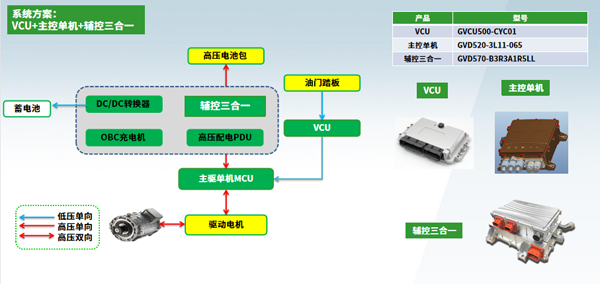 方案二:VCU+主控单机(MCU)+辅控三合一(DC/DC、OBC、PDU)