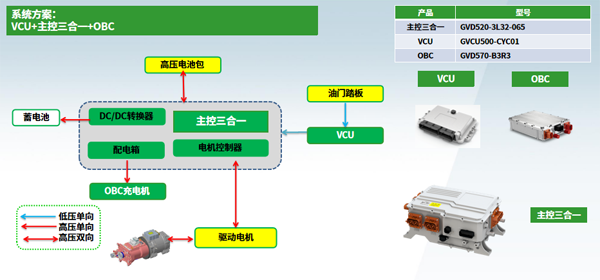 方案三:VCU+主控三合一(MCU、DC/DC、PDU)+OBC
