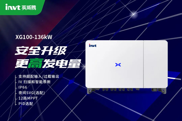 XG100-136kW,支持超配输入/过载输出;最大12路MPPT功率追踪,复杂应用场景提升发电量;电池板IV扫描和智能诊断,判断现场电池板配置情况,诊断电池板是否存在受损等情况;支持内置PID,防止电池板PID效应,延长电池板使用寿命; 支持选配夜间SVG功能。