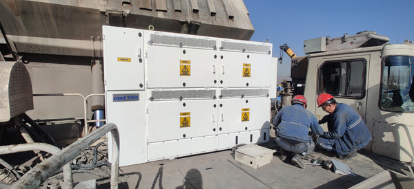 该变流装置适配330吨级MT5500矿用电动轮自卸卡车,该车是TEREX/UNIT RIG产品线的高端机型,被称之为“矿山巨无霸”。车高7.67米,轮胎的直径达4米,自重223吨,载重后可达557吨。这是我国具有自主知识产权的330吨级电动轮自卸车变流产品批量应用项目,标志着我国摆脱了超大型电动轮自卸车变流产品这一关键核心技术长期依赖进口的局面。与国外同类产品在技术水平、价格、备件供应、维护便利性、售后服务等方面相比具有明显的优势和更强的竞争力。