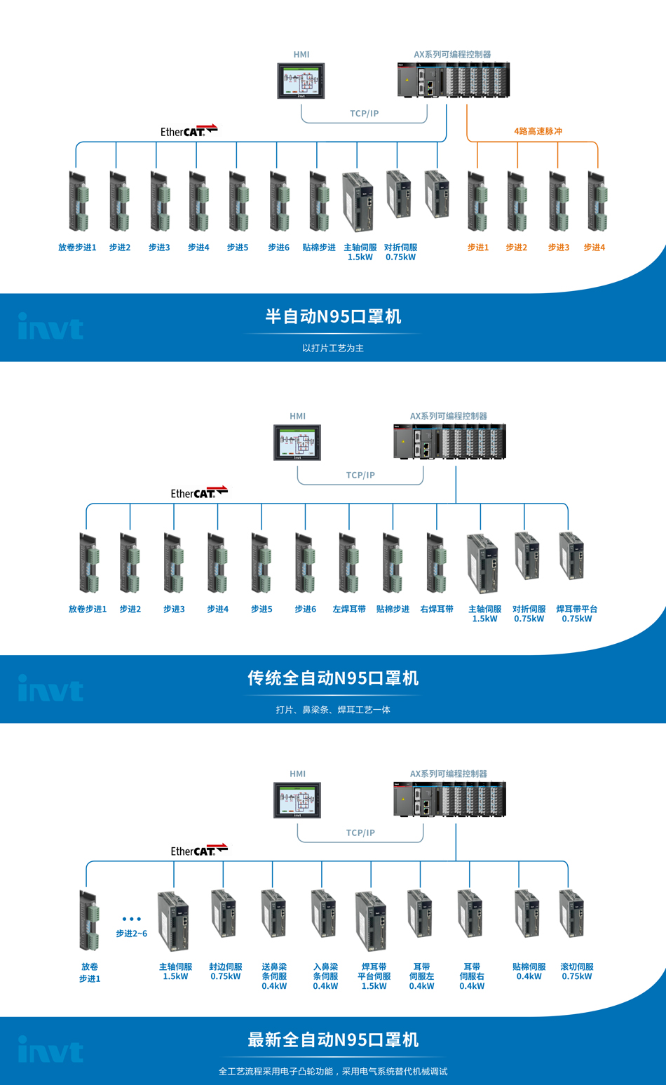 方便接线:采用EtherCAT总线方案,控制器与伺服通过网线连接,节约大量接线时间,提高生产速度;