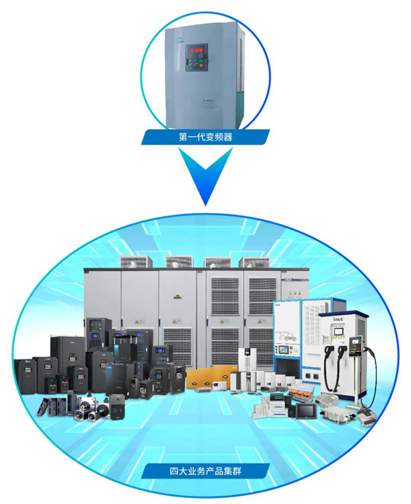 从单一的变频器业务,发展到工业自动化、网络能源、新能源汽车及轨道交通四大业务集群;