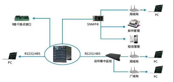 强大的远程网络管理方案:通过SNMP网络管理卡用户可通过网络远程监测和控制UPS系统,也可通过配套的远程监控盒对多个设备进行同时远程监控。