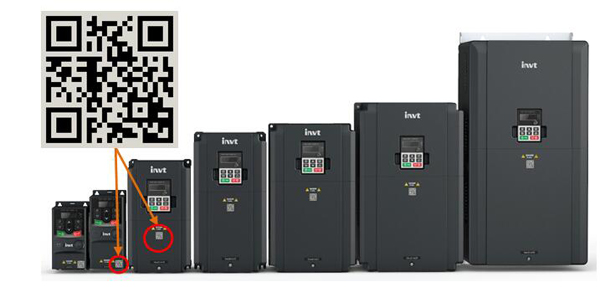 通过扫描变频器外壳正面的二维码进入电子说明书,选择对应的产品,并根据需要查询所需的内容: