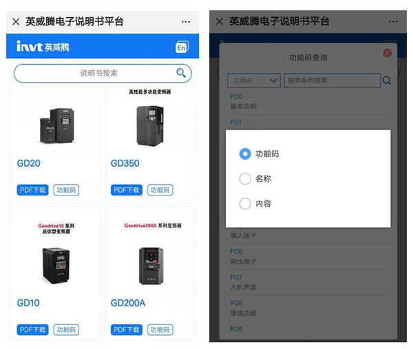 电子说明书可轻松实现下载保存、在线浏览以及查询功能,方便客户随时随地查找所需的内容和功能码: