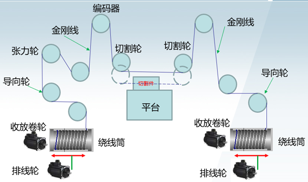 单线切割机用采用2个绕线筒,来回往复循环运动,带动金钢线在加工件上是实现切割加工;