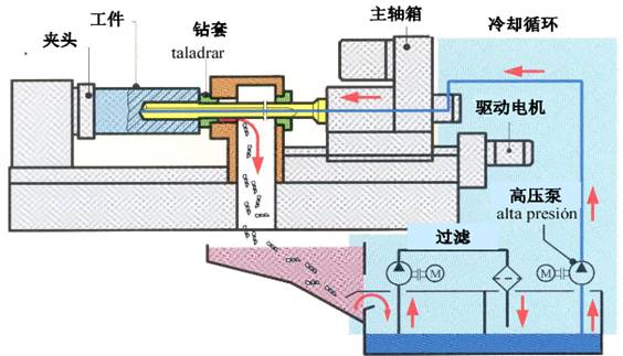 (2)冷却和润滑充分。在钻屑过程中,具有一定压力的切削液不仅能将高速时产生的热量带走,而且还有润滑作用和防腐作用。