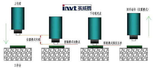 压力组装机是一种用于手机听筒金属网膜的压力组装设备,主要是通过压头对网膜施加一个下压的保持力矩让网膜紧贴听筒,设备一共两个伺服轴,工件的下压Z轴和送料X轴,由于客户台湾代工大厂F公司也是第一次开发此类设备,Invt公司推荐的配置如下。