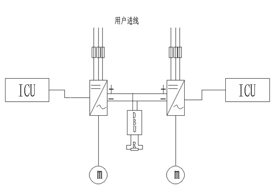 ● 主传动系统两台90kW电机组成分别由两台GD800-11-0090-4,卷取机为速度控制,开卷机为速度控制、力矩限幅模式,保证在断带状况下不飞车。由于开卷电机一直处于发电状态,因此,通过共直流母线方式,把开卷电机把多余能量通过直流母线传导给卷取电机,减少能量损耗,节能;