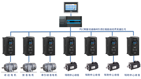 3、在收放卷变频器内置恒张力控制软件,对转矩补偿和惯量补偿及卷径计算具有很高的实时性,这是一般通信没法实现的;