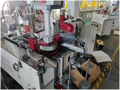小型点胶机由转盘寻料、提升上料、机械手移料、点胶动作四部分组成。对不同规格型号的滤芯盖进行点胶。