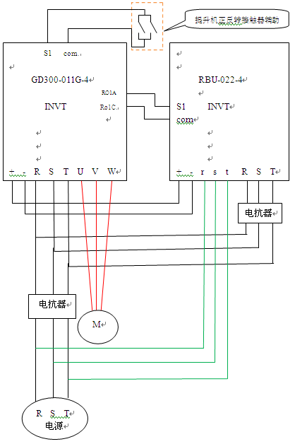 方案有Goodrive300系列变频器来驱动电机,能量回馈单元RBU负责能量回收,具体型号根据现场电机和客户要求选型,节电系统图如图2所示。